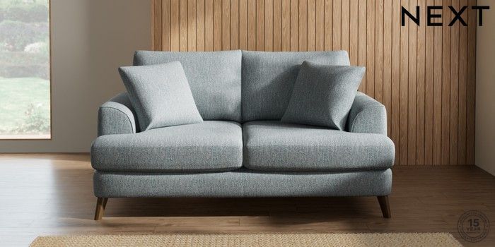 7.0.3 Buy Parker 3 Seater Small Sofa Chunky Weave Mid Blue Low Retro Tapered - Mid from the Laura Ashley online shop Click here to use our website with more accessibility support, for example screen readers