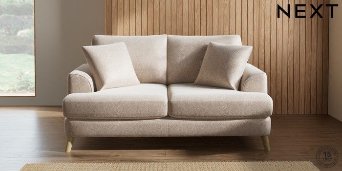 7.0.3 Buy Parker 3 Seater Small Sofa Cotswold Chenille Light Natural Low Retro Tapered - Light from the Laura Ashley online shop Click here to use our website with more accessibility support, for example screen readers