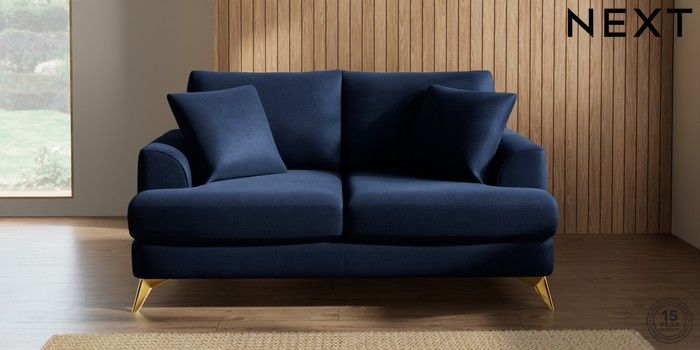 7.2.5 Buy Parker 3 Seater Small Sofa Luxe Chenille Navy Blue High Metal - Brass from the Laura Ashley online shop Click here to use our website with more accessibility support, for example screen readers