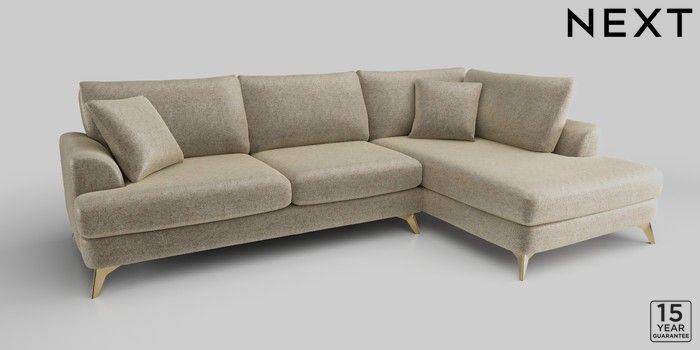 6.12.1 Buy Parker Large Corner Chaise - Right Hand Plush Chenille Light Natural High Metal - Brass from the Laura Ashley online shop Click here to use our website with more accessibility support, for example screen readers