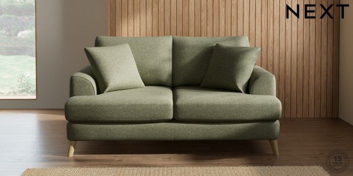 7.0.3 Buy Parker 3 Seater Small Sofa Tweedy Chenille Mid Moss Green Low Retro Tapered - Light from the Laura Ashley online shop Click here to use our website with more accessibility support, for example screen readers