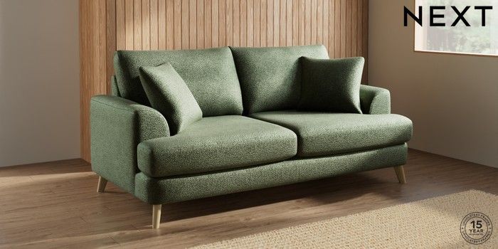 7.0.3 Buy Parker 3 Seater Sofa Boucle Chenille Dark Moss Green Low Retro Tapered - Light from the Laura Ashley online shop Click here to use our website with more accessibility support, for example screen readers