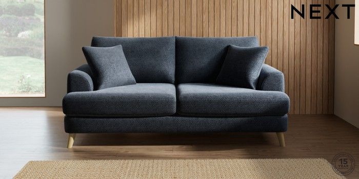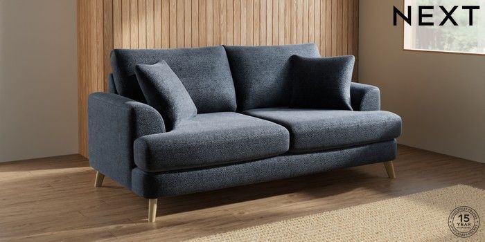 7.0.3 Buy Parker 3 Seater Sofa Boucle Chenille Dark Slate Blue Low Retro Tapered - Light from the Laura Ashley online shop Click here to use our website with more accessibility support, for example screen readers