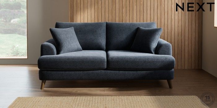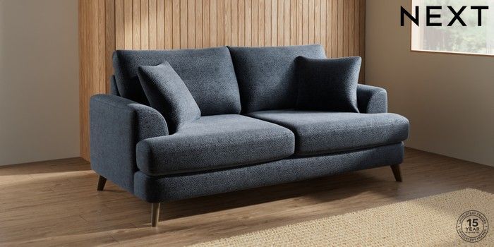 7.0.3 Buy Parker 3 Seater Sofa Boucle Chenille Dark Slate Blue Low Retro Tapered - Mid from the Laura Ashley online shop Click here to use our website with more accessibility support, for example screen readers