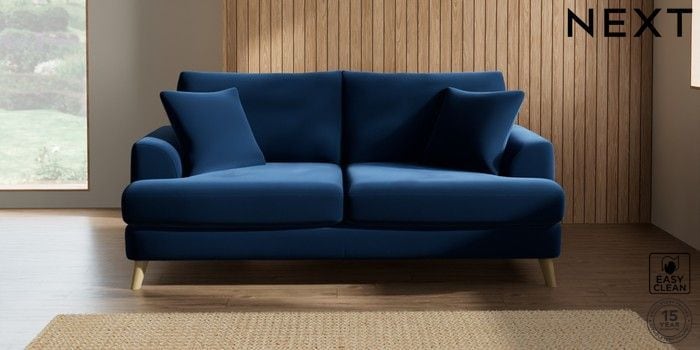 7.2.6 Buy Parker 3 Seater Sofa Plush Velvet Easy Clean Navy Blue Low Retro Tapered - Light from the Laura Ashley online shop Click here to use our website with more accessibility support, for example screen readers
