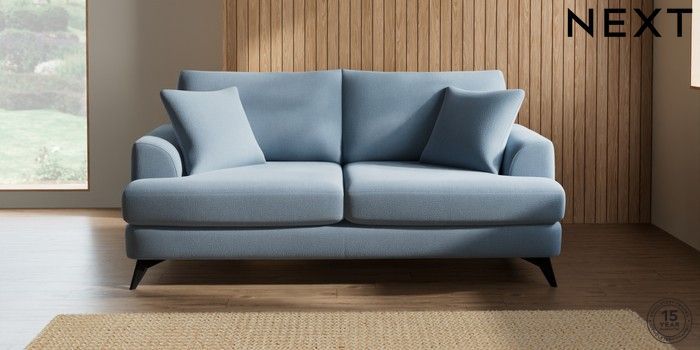 7.2.5 Buy Parker 3 Seater Sofa Relaxed Linen Look Mid Blue High Metal - Black from the Laura Ashley online shop Click here to use our website with more accessibility support, for example screen readers