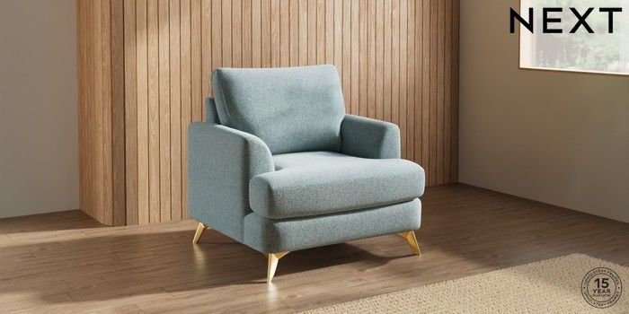 7.2.10 Buy Parker Armchair Chunky Marl Mid Blue High Metal - Brass from the Laura Ashley online shop Click here to use our website with more accessibility support, for example screen readers