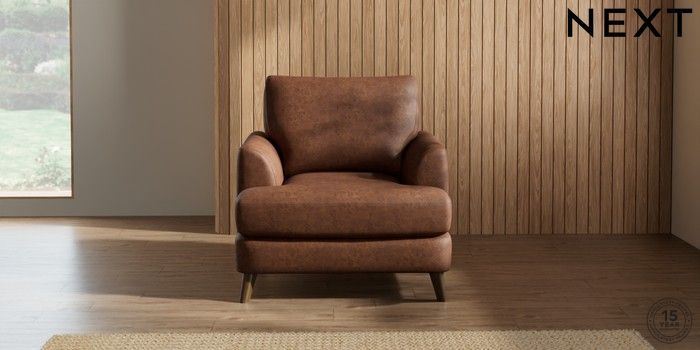 7.2.5 Buy Parker Armchair Monza Faux Leather Easy Clean Chestnut Brown Low Retro Tapered - Mid from the Laura Ashley online shop Click here to use our website with more accessibility support, for example screen readers