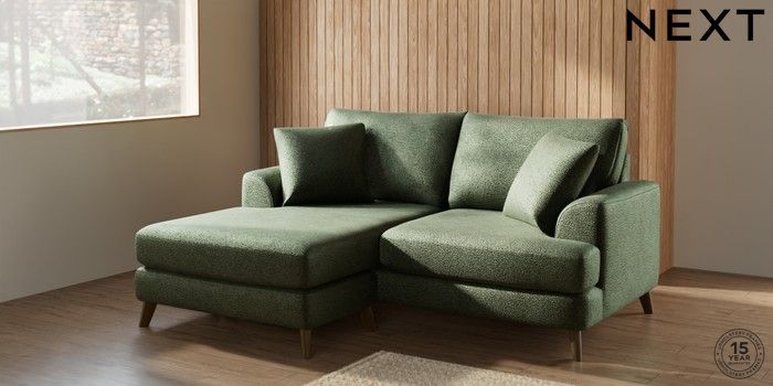 7.0.3 Buy Parker Compact Sofa Chaise - Universal Boucle Chenille Dark Moss Green Low Retro Tapered - Mid from the Laura Ashley online shop Click here to use our website with more accessibility support, for example screen readers