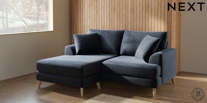 7.2.5 Buy Parker Compact Sofa Chaise - Universal Boucle Chenille Dark Slate Blue Low Retro Tapered - Light from the Laura Ashley online shop Click here to use our website with more accessibility support, for example screen readers