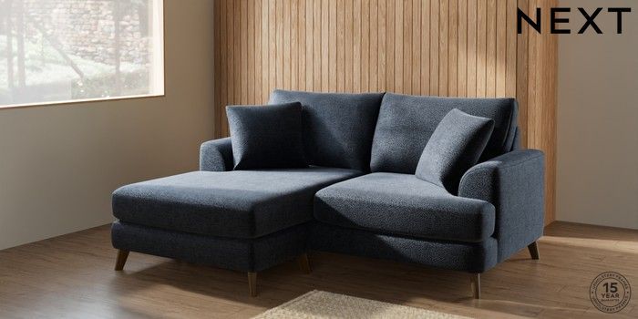 7.0.3 Buy Parker Compact Sofa Chaise - Universal Boucle Chenille Dark Slate Blue Low Retro Tapered - Mid from the Laura Ashley online shop Click here to use our website with more accessibility support, for example screen readers