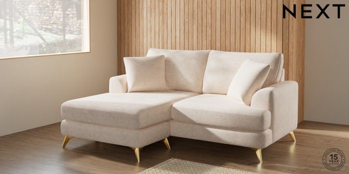7.2.5 Buy Parker Compact Sofa Chaise - Universal Boucle Chenille Oyster High Metal - Brass from the Laura Ashley online shop Click here to use our website with more accessibility support, for example screen readers
