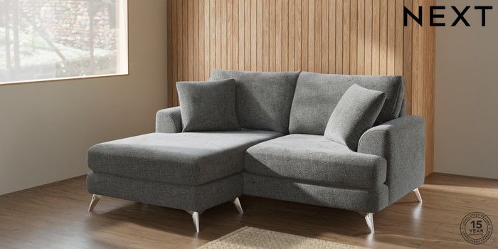 7.2.5 Buy Parker Compact Sofa Chaise - Universal Chunky Chenille Dark Grey High Metal - Chrome from the Laura Ashley online shop Click here to use our website with more accessibility support, for example screen readers