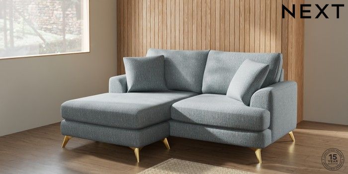 7.2.5 Buy Parker Compact Sofa Chaise - Universal Chunky Weave Mid Blue High Metal - Brass from the Laura Ashley online shop Click here to use our website with more accessibility support, for example screen readers