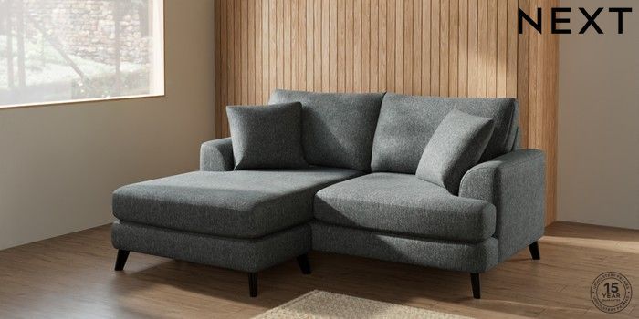 7.0.3 Buy Parker Compact Sofa Chaise - Universal Cotswold Chenille Dark Grey Low Retro Tapered - Dark from the Laura Ashley online shop Click here to use our website with more accessibility support, for example screen readers