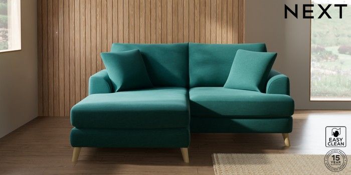 7.2.4 Buy Parker Compact Sofa Chaise - Universal Fine Chenille Easy Clean Dark Juniper Green Low Retro Tapered - Light from the Laura Ashley online shop Click here to use our website with more accessibility support, for example screen readers