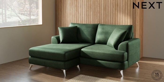 7.2.5 Buy Parker Compact Sofa Chaise - Universal Luxe Chenille Dark Green High Metal - Chrome from the Laura Ashley online shop Click here to use our website with more accessibility support, for example screen readers