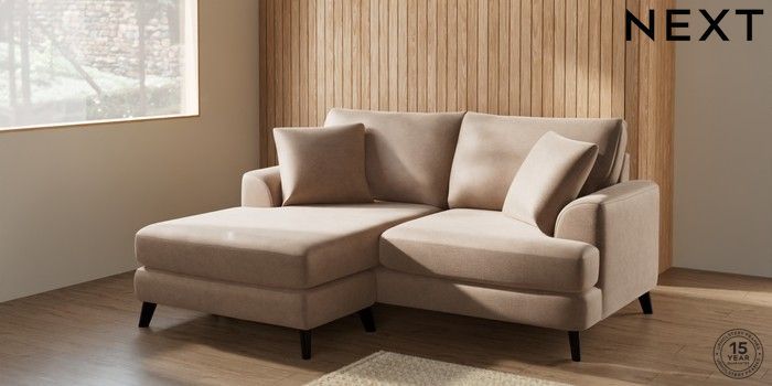 7.2.5 Buy Parker Compact Sofa Chaise - Universal Luxe Chenille Mid Natural Low Retro Tapered - Dark from the Laura Ashley online shop Click here to use our website with more accessibility support, for example screen readers