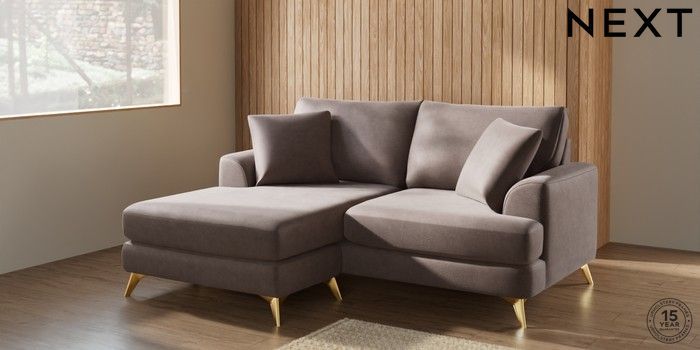 7.2.5 Buy Parker Compact Sofa Chaise - Universal Luxe Chenille Mink Brown High Metal - Brass from the Laura Ashley online shop Click here to use our website with more accessibility support, for example screen readers