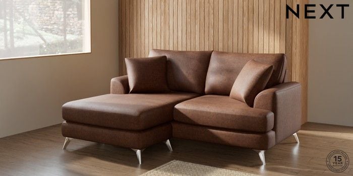 7.2.5 Buy Parker Compact Sofa Chaise - Universal Monza Faux Leather Easy Clean Chestnut Brown High Metal - Chrome from the Laura Ashley online shop Click here to use our website with more accessibility support, for example screen readers