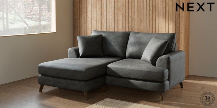 7.2.5 Buy Parker Compact Sofa Chaise - Universal Monza Faux Leather Easy Clean Dark Grey Low Retro Tapered - Mid from the Laura Ashley online shop Click here to use our website with more accessibility support, for example screen readers