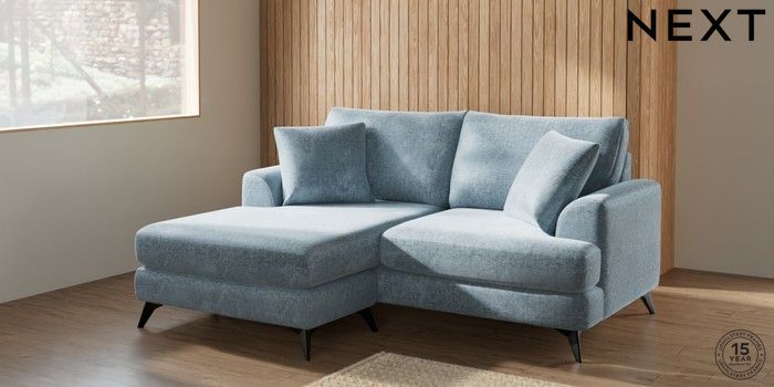 7.2.6 Buy Parker Compact Sofa Chaise - Universal Plush Chenille Light Blue High Metal - Black from the Laura Ashley online shop Click here to use our website with more accessibility support, for example screen readers
