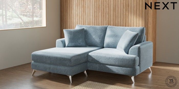 7.2.6 Buy Parker Compact Sofa Chaise - Universal Plush Chenille Light Blue High Metal - Chrome from the Laura Ashley online shop Click here to use our website with more accessibility support, for example screen readers