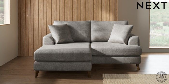7.2.10 Buy Parker Compact Sofa Chaise - Universal Plush Chenille Light Grey Low Retro Tapered - Mid from the Laura Ashley online shop Click here to use our website with more accessibility support, for example screen readers