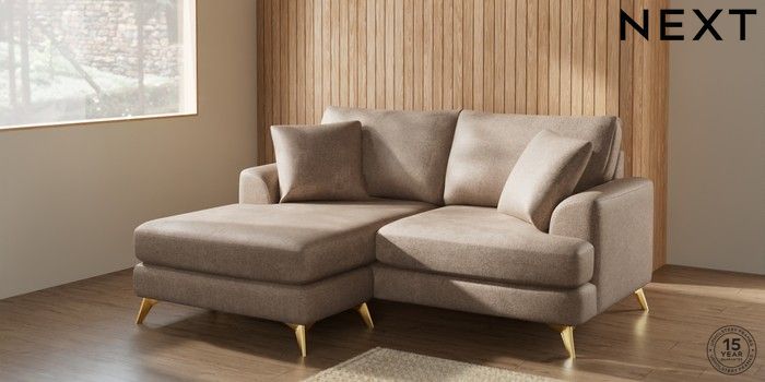 7.2.5 Buy Parker Compact Sofa Chaise - Universal Plush Chenille Mid Natural High Metal - Brass from the Laura Ashley online shop Click here to use our website with more accessibility support, for example screen readers
