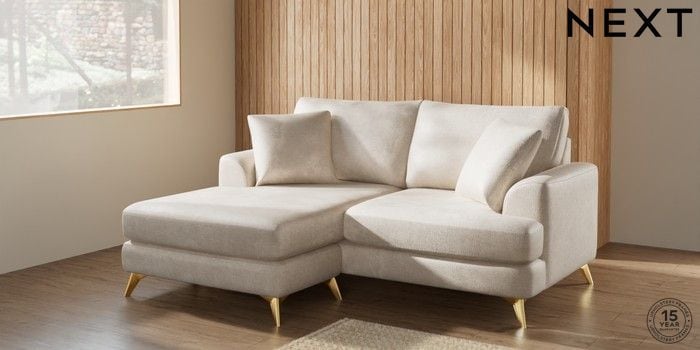 7.2.5 Buy Parker Compact Sofa Chaise - Universal Plush Chenille Oyster High Metal - Brass from the Laura Ashley online shop Click here to use our website with more accessibility support, for example screen readers
