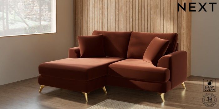 7.2.5 Buy Parker Compact Sofa Chaise - Universal Plush Velvet Easy Clean Ginger Orange High Metal - Brass from the Laura Ashley online shop Click here to use our website with more accessibility support, for example screen readers