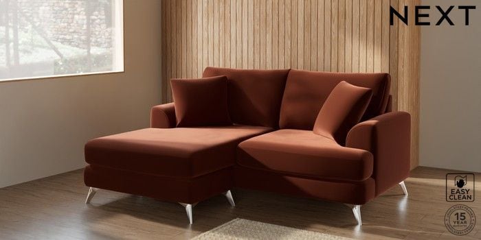 7.2.5 Buy Parker Compact Sofa Chaise - Universal Plush Velvet Easy Clean Ginger Orange High Metal - Chrome from the Laura Ashley online shop Click here to use our website with more accessibility support, for example screen readers