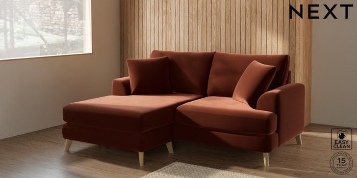 7.2.5 Buy Parker Compact Sofa Chaise - Universal Plush Velvet Easy Clean Ginger Orange Low Retro Tapered - Light from the Laura Ashley online shop Click here to use our website with more accessibility support, for example screen readers