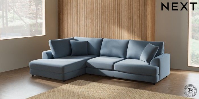 7.2.6 Buy Parker Corner Chaise Bed - Left Hand Relaxed Linen Look Mid Blue Glide from the Laura Ashley online shop Click here to use our website with more accessibility support, for example screen readers
