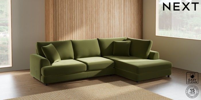 7.2.5 Buy Parker Corner Chaise Bed - Right Hand Plush Velvet Easy Clean Mid Olive Green Glide from the Laura Ashley online shop Click here to use our website with more accessibility support, for example screen readers
