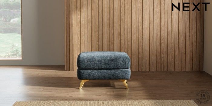 7.2.5 Buy Parker Footstool Chunky Chenille Dark Navy Blue High Metal - Brass from the Laura Ashley online shop Click here to use our website with more accessibility support, for example screen readers
