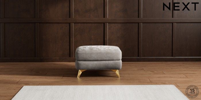 7.2.5 Buy Parker Footstool Distressed Velour French Grey High Metal - Brass from the Laura Ashley online shop Click here to use our website with more accessibility support, for example screen readers