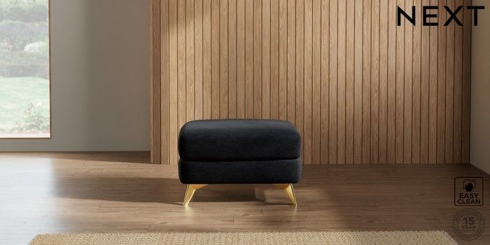 7.2.5 Buy Parker Footstool Fine Chenille Easy Clean Black High Metal - Brass from the Laura Ashley online shop Click here to use our website with more accessibility support, for example screen readers