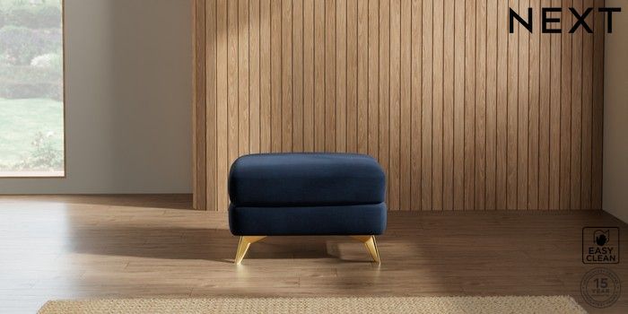 7.2.5 Buy Parker Footstool Fine Chenille Easy Clean Dark Navy Blue High Metal - Brass from the Laura Ashley online shop Click here to use our website with more accessibility support, for example screen readers