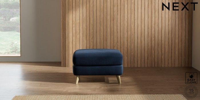 7.2.5 Buy Parker Footstool Fine Chenille Easy Clean Dark Navy Blue Low Retro Tapered - Light from the Laura Ashley online shop Click here to use our website with more accessibility support, for example screen readers