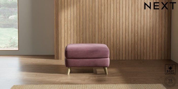 7.2.5 Buy Parker Footstool Fine Chenille Easy Clean Mid Mulberry Purple Low Retro Tapered - Light from the Laura Ashley online shop Click here to use our website with more accessibility support, for example screen readers