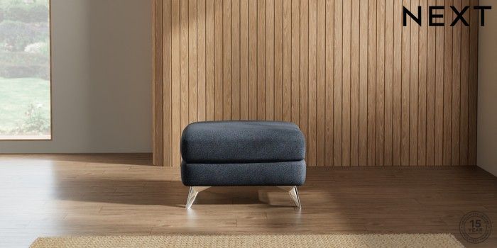7.2.5 Buy Parker Footstool Tweedy Chenille Navy Blue High Metal - Chrome from the Laura Ashley online shop Click here to use our website with more accessibility support, for example screen readers