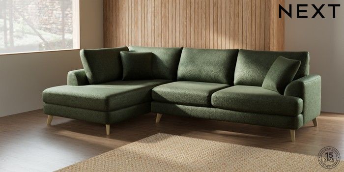 7.2.6 Buy Parker Large Corner Chaise - Left Hand Boucle Chenille Dark Moss Green Low Retro Tapered - Light from the Laura Ashley online shop Click here to use our website with more accessibility support, for example screen readers