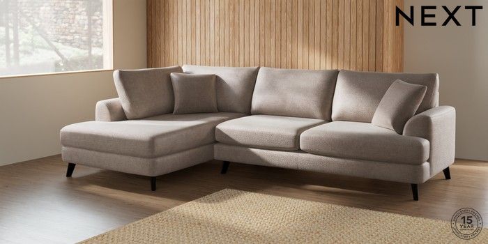 7.2.5 Buy Parker Large Corner Chaise - Left Hand Boucle Chenille Light Natural Low Retro Tapered - Dark from the Laura Ashley online shop Click here to use our website with more accessibility support, for example screen readers