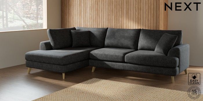7.2.4 Buy Parker Large Corner Chaise - Left Hand Boucle Weave Easy Clean Charcoal Grey Low Retro Tapered - Light from the Laura Ashley online shop Click here to use our website with more accessibility support, for example screen readers