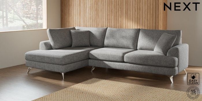 7.2.5 Buy Parker Large Corner Chaise - Left Hand Chunky Boucle Easy Clean Light Grey High Metal - Chrome from the Laura Ashley online shop Click here to use our website with more accessibility support, for example screen readers