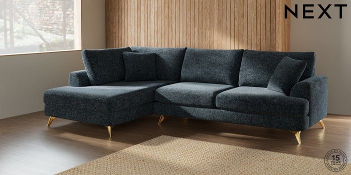 7.2.5 Buy Parker Large Corner Chaise - Left Hand Chunky Chenille Dark Navy Blue High Metal - Brass from the Laura Ashley online shop Click here to use our website with more accessibility support, for example screen readers