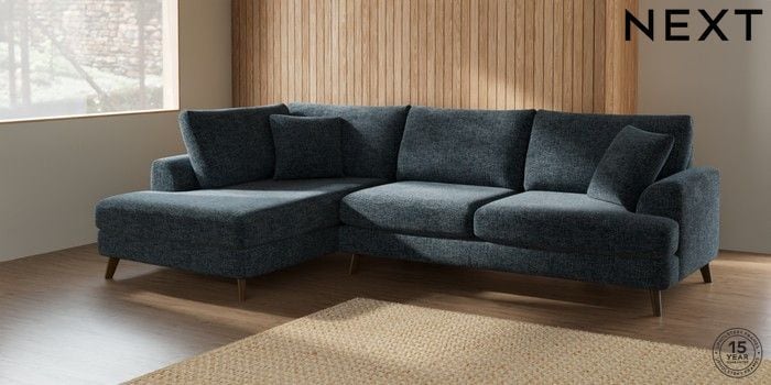 7.2.5 Buy Parker Large Corner Chaise - Left Hand Chunky Chenille Dark Navy Blue Low Retro Tapered - Mid from the Laura Ashley online shop Click here to use our website with more accessibility support, for example screen readers