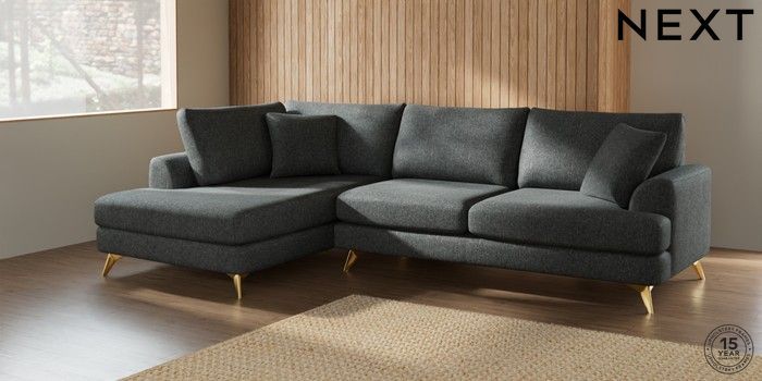 7.2.5 Buy Parker Large Corner Chaise - Left Hand Cotswold Chenille Dark Grey High Metal - Brass from the Laura Ashley online shop Click here to use our website with more accessibility support, for example screen readers