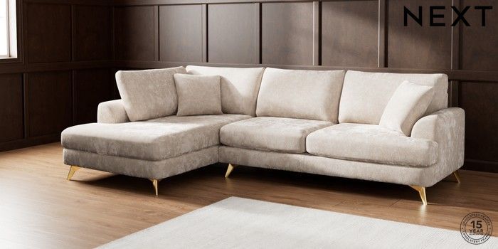 7.2.5 Buy Parker Large Corner Chaise - Left Hand Distressed Velour Mid Natural High Metal - Brass from the Laura Ashley online shop Click here to use our website with more accessibility support, for example screen readers